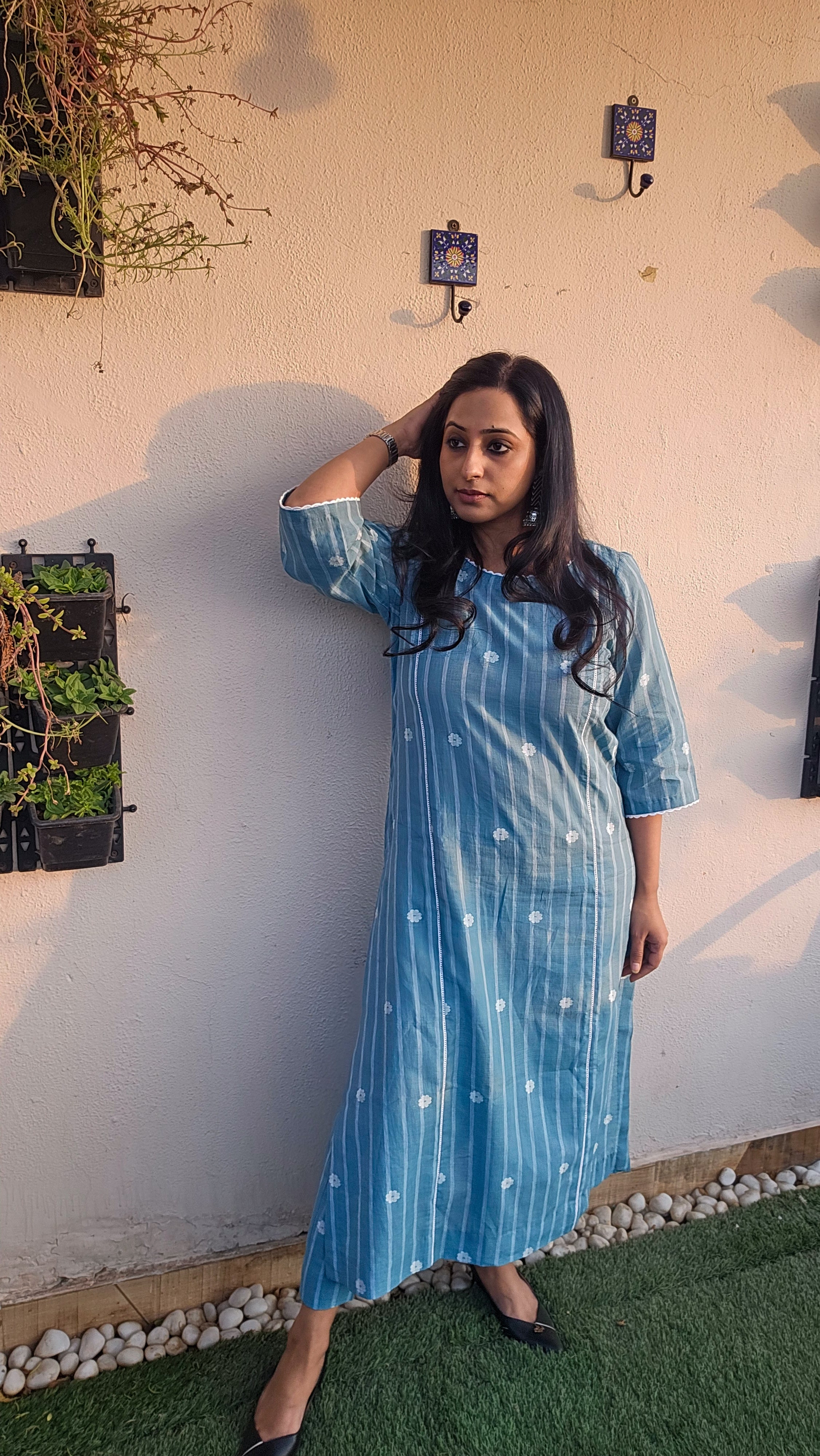 Discover understated elegance with this Blue Jamdani Coord, where traditional craftsmanship meets contemporary office style. Woven from premium, skin-friendly fabric in a refined bluish-grey tone, this lightweight ensemble breathes effortlessly throughout your workday. The coordinated set combines luxurious texture with practical comfort, allowing you to move with confidence and grace. Ideal for the discerning professional who refuses to compromise between sophistication and wearability.